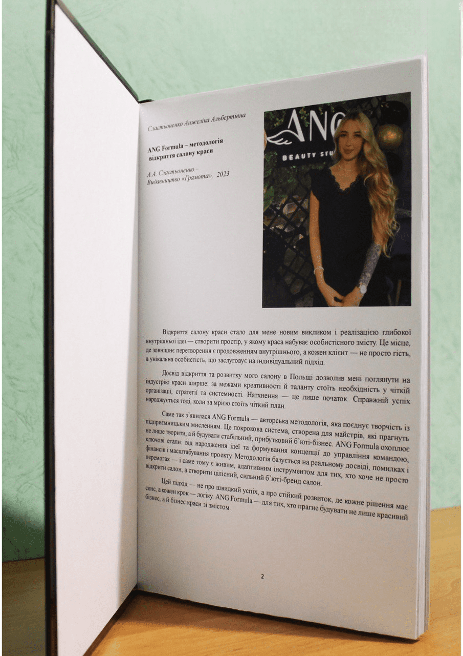 «ANG FORMULA — методологія відкриття салону краси» — книга про те, як відкрити прибутковий салон краси, побудувати сильний бренд і сформувати лояльну команду.